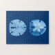 Sand Dollar Sea Life Print, Indigo Blue and White Jigsaw Puzzle