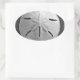 A sand dollar seashell rests on the sand beach coastline with gentle side lighting from the sunset. Image is a black and white photo taken at Playa Grande, Costa Rica on the Pacific Coast. Personalize this sea shell sticker with your own text or images using the customize it option to make a special seashell gift!