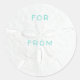 Round white sand dollar stickers to use for gift giving. "For" and "From" text is printed in sea green colour. Use when wrapping tropical themed gifts for Christmas or any occasion.