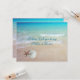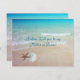Beach scene "Will you be my Bridesmaid?" cards. Fill in the blank for members of the bridal party and personalize with her name. Tropical blue ocean, little waves at the shore, and sand dollars and a sea star are the images on front and back. Dark brown text is hand-printed calligraphy font style. Include a short message to the recipient on the back.