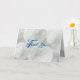 Beach themed thank you cards for newlyweds or anyone. The sample message is a thank you for a wedding gift and is easy to change. A little blue heart is included inside, but it can be removed in the template. White sand dollars decorate the front of cards that can also be shared digitally. The background is white, beach sand and carries into the inside of the folded card. Wording is navy blue and matches the top of the inside.