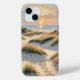 Watercolor footprints in beach sand dunes with pampas grass sunrise over the ocean
