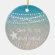 This fun beach living design Sand is the new snow ornament features a beach scene with a sea-star and string lights handing across the top. Personalize by adding a year.