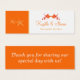 This nautical beach theme inspired wedding favour thank you tag has bright orange hibiscus type tropical flowers and decorative scrolls on it, along with sand beige starfish that match the wedding invitation shown below. It would be perfect for a destination wedding, a beach wedding, or for anyone getting married in the tropics. If you require any matching items in this design, or if you need help customizing it with your info, please email niteowlstudio@gmail.com. ****PLEASE NOTE that everything will print as it appears on your monitor. I will not see your card once you order it and Zazzle will not edit anything.