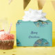 Printed with sanddollar abstract patterns in teal background with text template for 'Merry Christmas'!