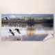 Wonderful digital composite painting from photography of Sandhill Crane Birds flying, and some at dawn resting in shallow water, is on this Sandhill Cranes Beach Towel.