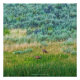 A photograph featuring a pair of young Sandhill Cranes walking in tall grass that is bordered by a massive growth of sagebrush.
