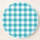 Sandstone Coaster, Teal Check Gingham Pattern Coaster