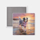 Sandy Australian Shepherd Dog on Beach Sunset Magnet