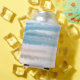 Can Cooler Koozie Sleeve Foam Wrap printed with Sandy Beach Ocean Waves Abstract Watercolor artwork design illustration by TheFabricSeal print on demand shop at Zazzle.com #ZazzleMade https://www.zazzle.com/store/thefabricseal. This salty watercolor abstract painting design coastal sandy beach, summer tan, blue ocean crashing waves and cloudy blue sky on the horizon featuring colour palette hues sand, tan, beige, blue, navy blue, sky blue, purple, turquoise, brown, white, grey and grey.