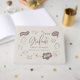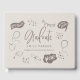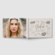 Perfect party essential for your graduation party! Celebrate their accomplishment in style with this guest book. It says "Graduate" in a casual script text in the middle with the graduate's information below. There are also quirky hand drawn illustration of academic motifs around. You can add a photo on the back of the book.