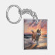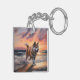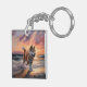 Sandy Paws Akita Dog on Beach Sunset Keychain