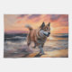 Linge De Cuisine Sandy Paws Akita Chien sur le coucher du soleil de