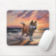 Sandy Paws Akita Dog on Beach Sunset Mouse Pad