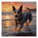 Sandy Paws Australian Cattle Dog on Beach Sunset Poster
