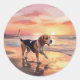 Sandy Paws Beagle Dog on Beach Sunset Classic Round Sticker