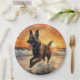 Sandy Paws Belgian Malinois Dog on Beach Sunset Paper Plate