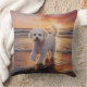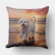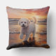 Sandy Paws Bichon Frise Dog on Beach Sunset Throw Pillow