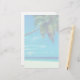 Stationery with a tropical themed photo featuring a coconut palm stretching out across a secluded white sandy beach. Turquoise waters and an azure blue sky in the background.