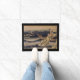 This gorgeous Japanese art entry door rug has a woodblock print on it called, "Sangi Takamura, Abalone Fisherman" by Katsushika Hokusai. It is one of a huge supply of entryway rugs obtainable from Superkalifragilistic.