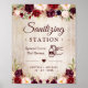Rustic Wood Burgundy Floral Wedding Sanitizing Station Sign Poster.
