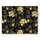 Motif sans couture avec orchidées en noir et or, richement décoré avec des rameaux d'eucalyptus noirs et des brindilles délicates à bijoux pistaches sur arrière - plan noir. Orchidée de bijoux en or.
