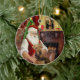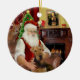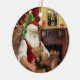 Santa at home relaxing in front of a cozy fire with his Airedale before the big night. Notice Mona Lisa hanging over the mantle.