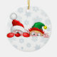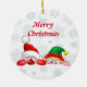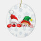 Santa and Elf Cute and funny Characters Peeking Ceramic Ornament