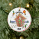 Santa and Elves in Gingerbread House Comic Design Ceramic Ornament