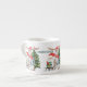 Personalized kids mug (espresso cup) for the holiday season. The design features a cute illustration of Santa and his Helpers with a sledge of gifts, a gnome and decorated Christmas tree. The template is set up for you to add the child's name and the year in whimsical typography.