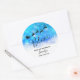 Festive baking kitchen sticker personalized with your name. A black silhouette of Santa riding in his sleigh being pulled by his reindeer flying across the sky. Believe written in a trendy script font. The background is an icy blue frosty snowflake design.