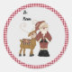 Santa and his Reindeer With Gingham Check Classic Round Sticker
