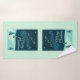 Ho-Ho-Ho Joyeuse serviette de Noël sertie avec une illustration vintage de Père Noël dans son traîneau tiré par ses rennes. De petites étoiles arrosent le ciel nocturne. Des pins couverts de neige au sol. Vintage esprit rétro.