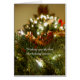Christmas Card featuring a photo focused on a Santa on a sleigh with reindeer ornament looking up a Christmas Tree.