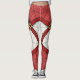 A bold geometric Christmas leggings design inspired by Santa’s classic outfit, featuring red panels, white accents, black belt-inspired lines, and subtle golden highlights. A modern festive look perfect for stylish holiday outfits.