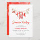 Festive red Santa inspired clothesline baby shower invitation in a rich red colour to set the tone for your event.