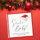 Cute guest book for your Christmas season baby shower featuring "Santa Baby" in a chic script with a heart swash, and a watercolor illustration of a red Santa Claus hat. Personalize the mother-to-be's name and the shower date in simple typography.