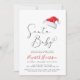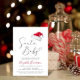 A cute minimal Christmas holiday season baby shower invitation featuring "Santa Baby" written in an elegant script with a heart swash, a watercolor illustration of a red Santa Claus hat and an invitation to a merry little baby shower. Personalize the mother's name in a stylish red script and the shower details in simple modern typography.