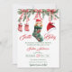 Celebrate the mom-to-be with this festive "Santa Baby" Christmas baby shower invitation. Featuring a cute teddy bear in a holiday stocking, red bows, and winter greenery, it’s perfect for a cozy and joyful holiday celebration.