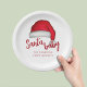 This design features a red Santa Baby Christmas traditional paper plate, a Santa Claus hat watercolor, holiday entertaining, Christmas party supplies, a cute holiday typography, custom customized personalized name, a classy simple minimalist minimal, custom holiday party decor, a Christmas Santa Claus hat, perfect for dinner dessert hor d'oeuvre appetizers