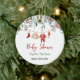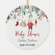 Santa Baby Shower Christmas Baby Clothes Winter Ceramic Ornament. Celebrate your baby's first Christmas with this simple and elegant ornament, featuring an adorable watercolor illustration and place to upload your baby's photo and stats on the back side.
