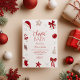 Santa Baby! A festive Christmas themed Baby Shower invitation featuring red and white christmas graphics - santa hat, presents, bow, stocking, candy cane, star, tree, baube, snow flake, misletoe.