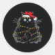 Santa Black Cat Tangled Up In Christmas Tree Light Classic Round Sticker