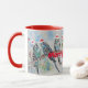 Santa Budgie Merry Christmas Name Mug Red. A glorious watercolor fun design. Designed from my original watercolor paintings, that I painted from my own flower garden.