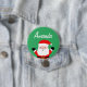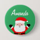 Large Santa cartoon name button for Christmas party at home or office. Cute drawing design with red nose. Script typography template for names. Personalized name badge buttons for corporate Holiday party. Custom decoration for company X-mas celebration. Suitable for kids and adults.