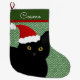 Santa Cat Black With Yellow Eyes Personalized Large Christmas Stocking