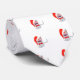 Hipster cat with a moustache wearing a Santa hat and red glasses