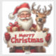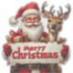 Santa Claus and a joyful reindeer hold a festive Merry Christmas sign amid falling snow, radiating holiday cheer, warmth, playful charm and family celebration for seasonal greeting cards and designs.
