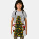 Santa claus and reindeer behind a christmas tree.j apron