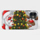 Santa claus and reindeer behind a christmas tree.j Case-Mate iPhone case